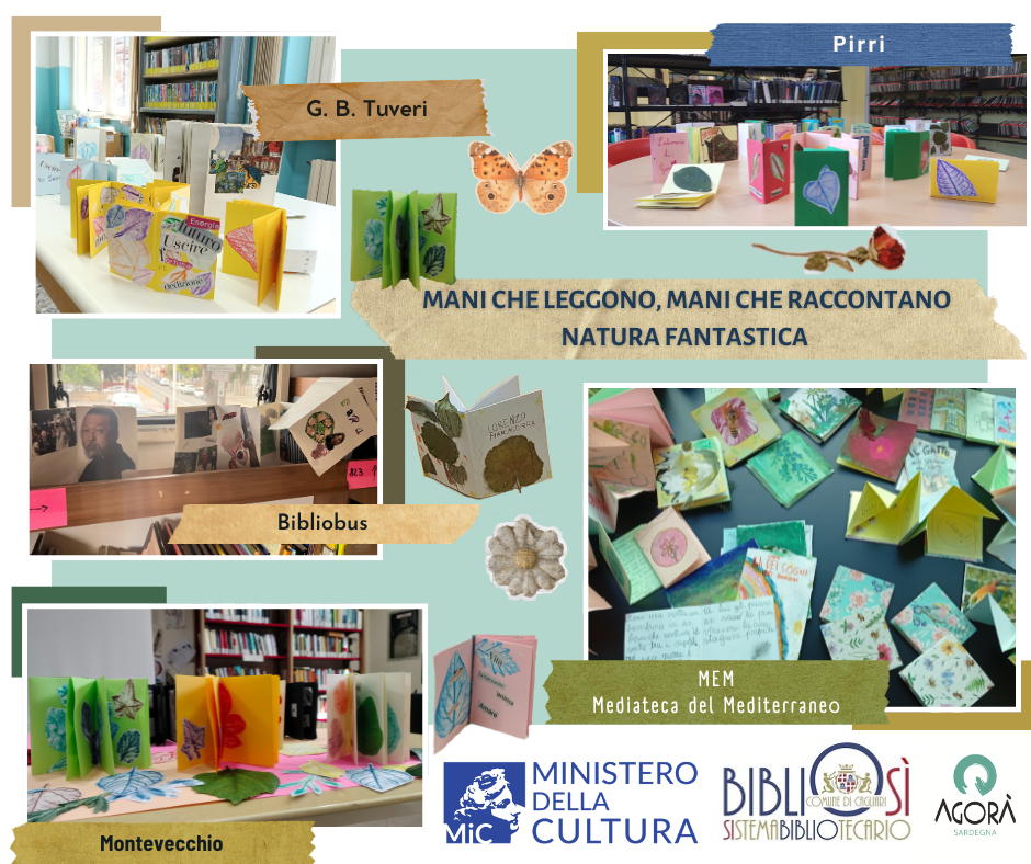 Oggi vi presentiamo i lavori finali di un progetto che ha visto protagoniste tutte le cinque sedi del Sistema Bibliotecario del Comune di Cagliari durante le scorse settimane. Si tratta del percorso "Mani che leggono, mani che raccontano – Natura fantastica", un atelier creativo e formativo che invita i bibliotecari a riscoprire la biblioteca come luogo vivo di relazione, sperimentazione e inclusione, attraverso l’intreccio tra arte, libro e narrazione. A partire dall'esplorazione bibliografica il percorso ha avuto come obiettivo principale la sperimentazione sul libro d'artista.